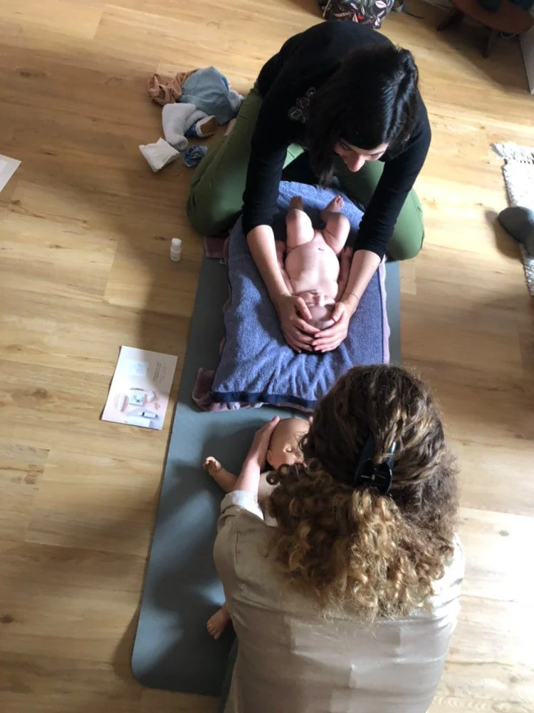 Lors de ces ateliers, je vous guide avec un poupon pour masser votre bébé avec douceur.